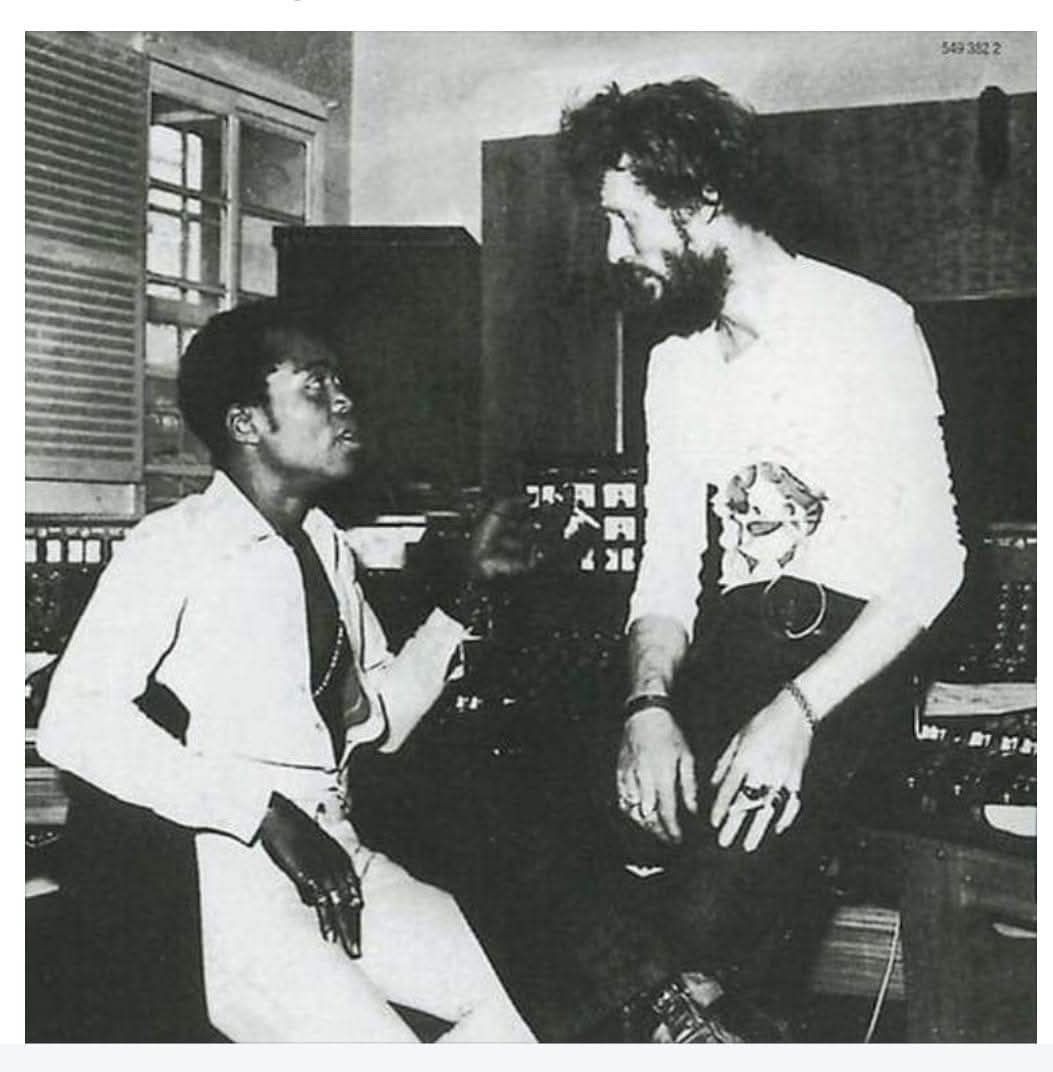 Recording Session: In 1971, Fela Kuti and Ginger Baker met in a studio setting, likely at Abbey Road Studios in London, to record together.